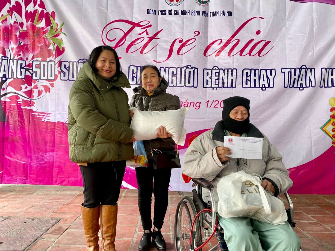 200 suất quà tết đã được trao tận tay các bệnh nhân có hoàn cảnh khó khăn tại bệnh viện Thận Hà Nội.