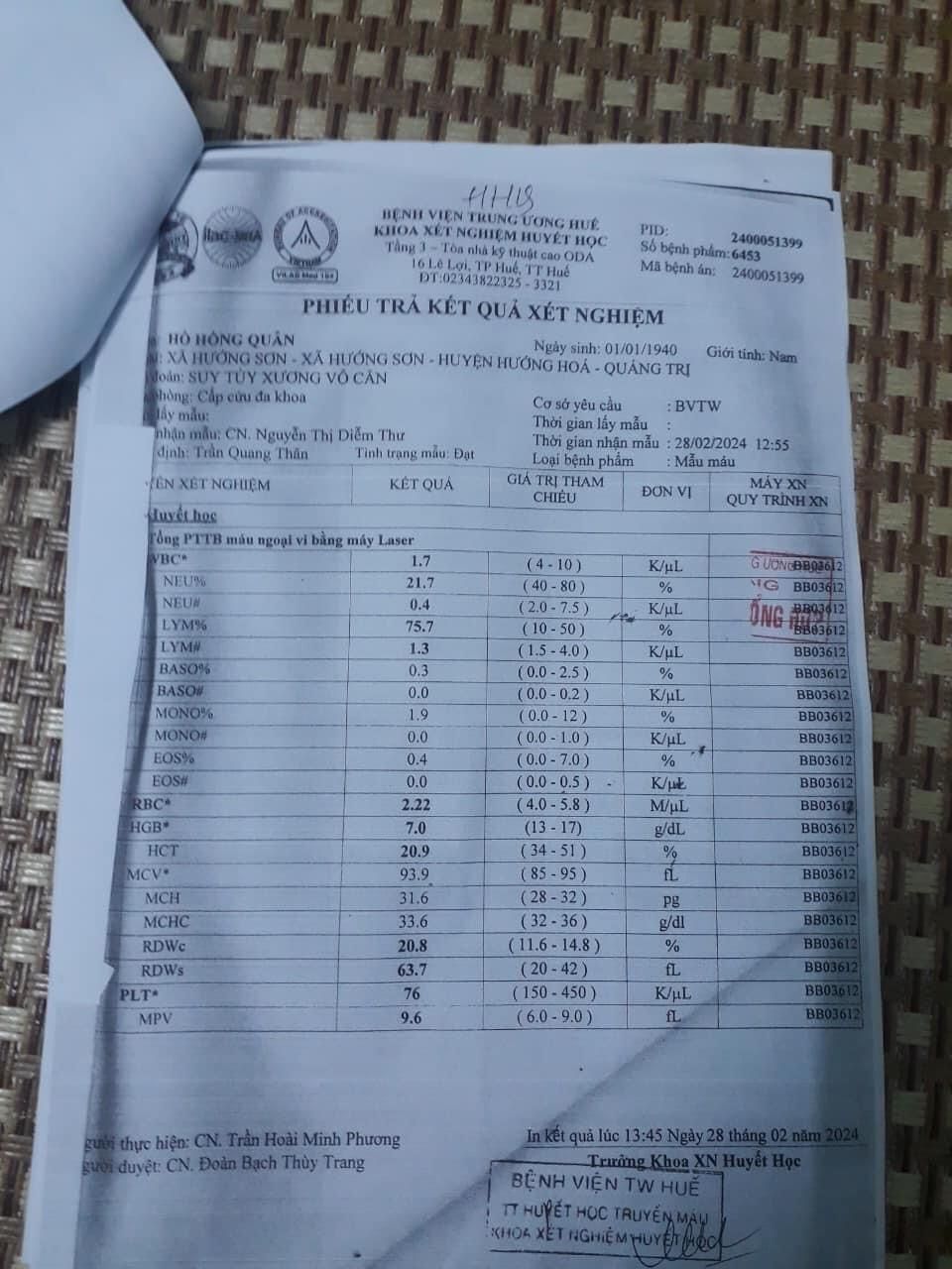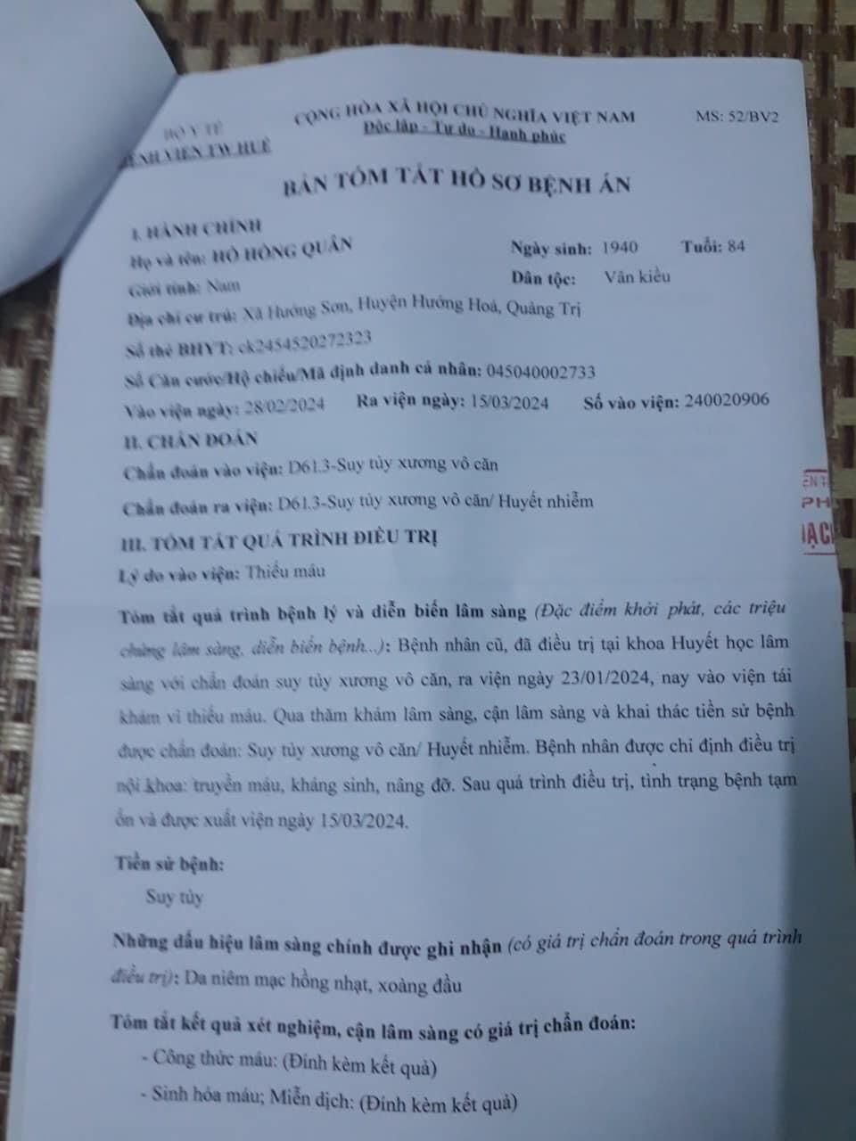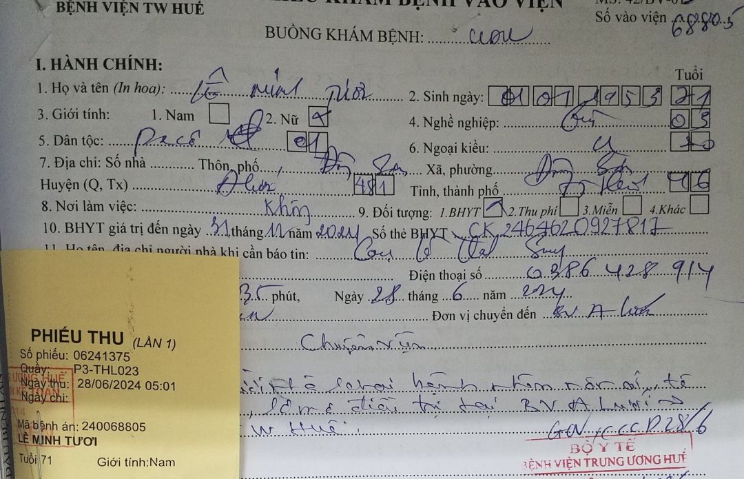 Đột quỵ. Chuyển tuyến từ BV A Lưới về TW Huế. Diễn tiến xấu, người nhà xin về.