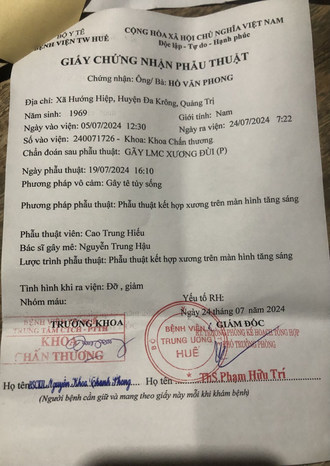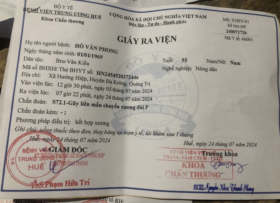 Chi phí chuyến đi: Trung chuyển thi hài, thanh toán theo yêu cầu tài xế xe cấp cứu viện A Lưới: 500k