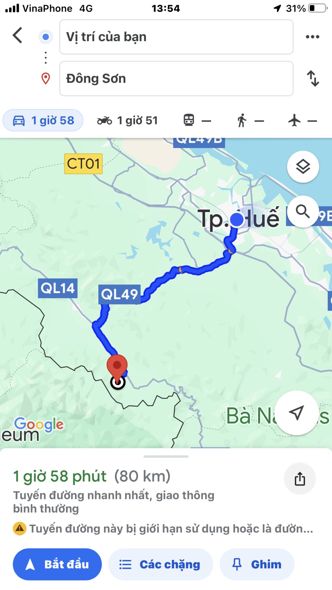 Lộ trình lý thuyết 80km đi về 160 km với khoảng hơn 4h đi về theo Google!