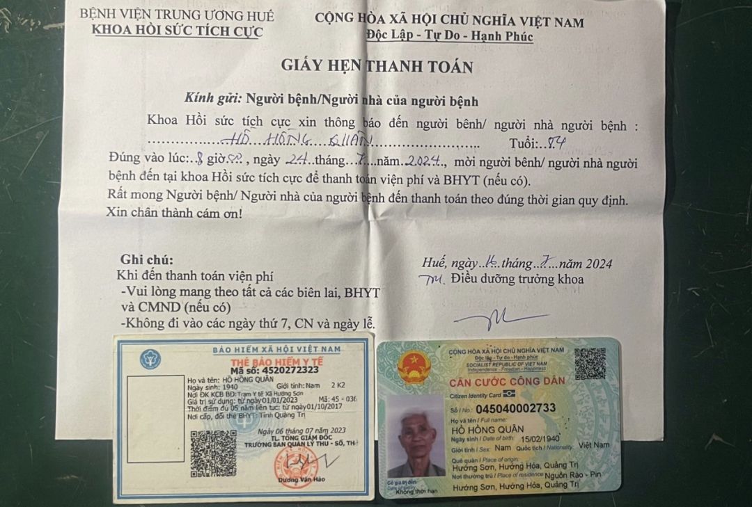 Đội hỗ trợ kết nối nhanh BV A Lưới (cách khoảng 20km). Sau 20phút BV A Lưới điều xe đến nối chuyến chở thi hài ông về nhà. Kinh phí phải trả cho chặng đường còn lại tầm 20km là 500k. Đội chúng ta đã thanh toán khoản kinh phí này.