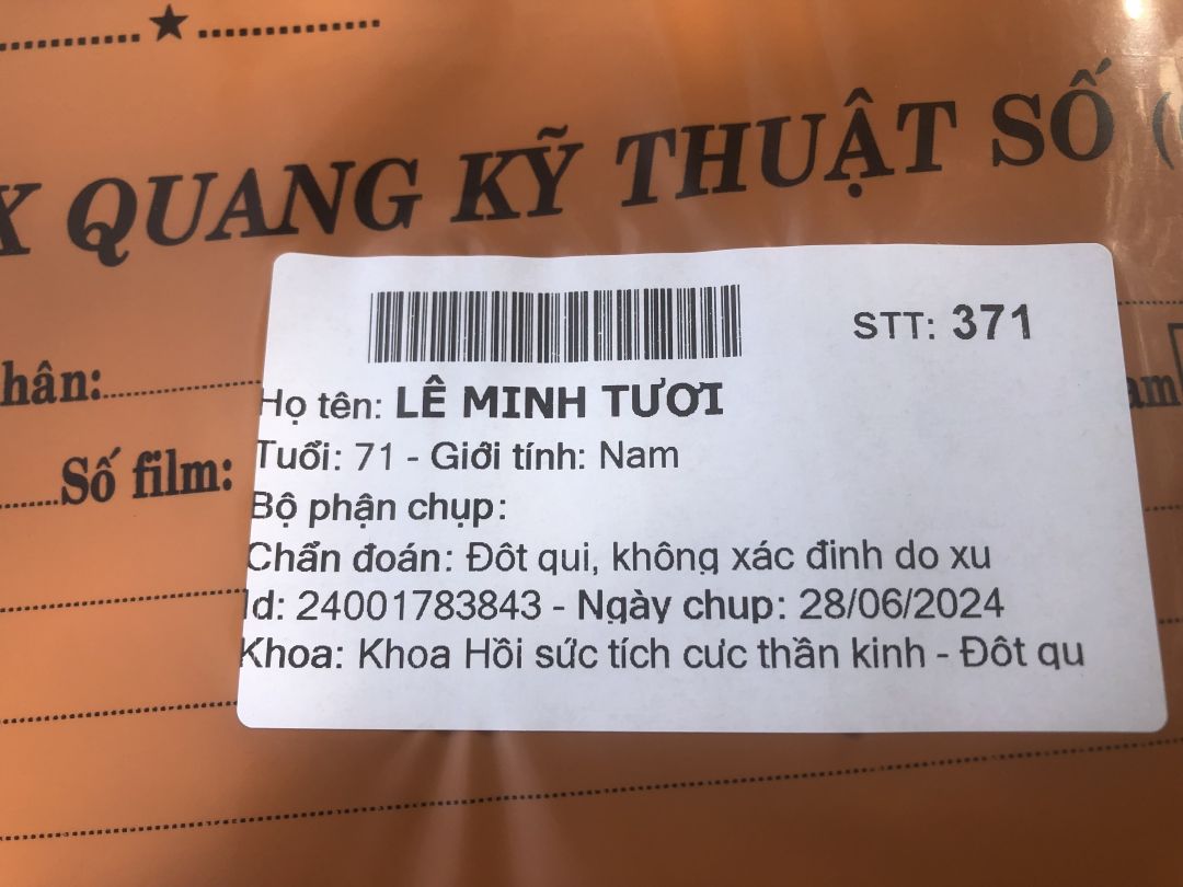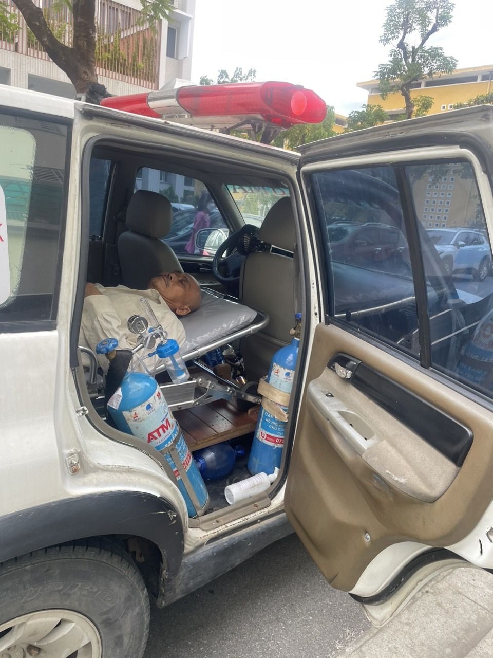 Yêu cầu xe từ khoa đột quỵ. Đội xác minh nhanh qua người nhà và đến viện để đưa ông về.