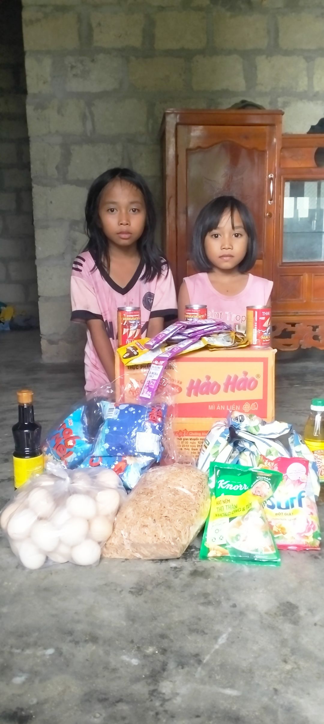 Gồm 500.000 đ tiền nhu yếu phẩm và trứng, khuyết khô nấu canh
