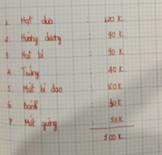 Đầu năm học t9 nên em đã ck 500.000đ cho gvcn để nộp các khoản con anh Nhiên