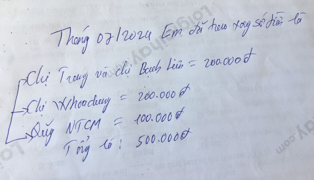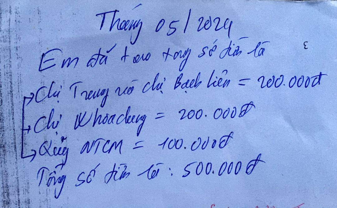 Em đã trao xong tổng số tiền là 500.000đ của các chị gồm: