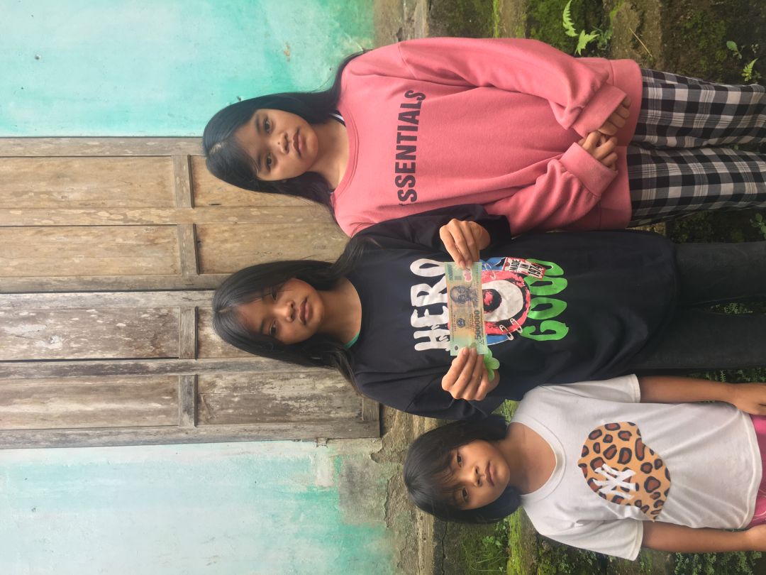 Tháng 5 em đã trao 200.000 đồng cho 3 cháu của bà Kê Thị Nga xong