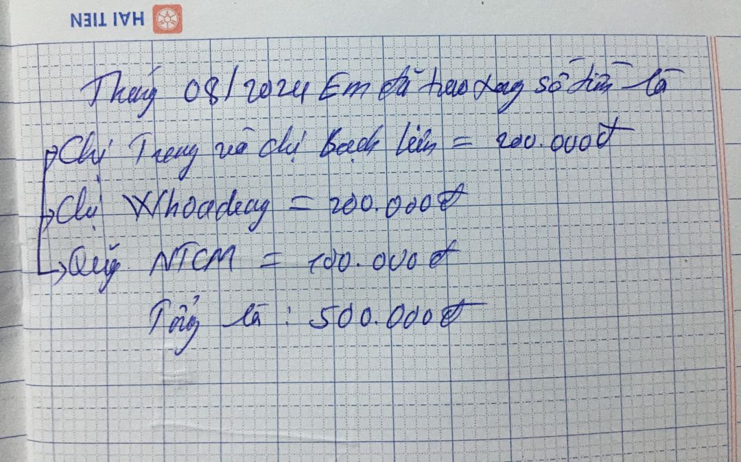 Em đã trao xong tổng số tiền là 500.000đ của các chị gồm: