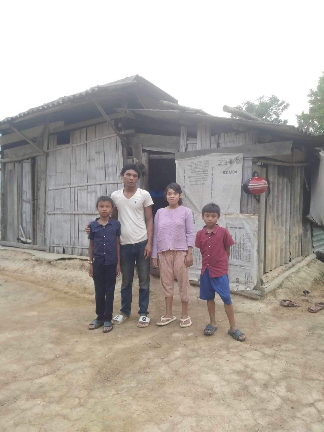 Ba 2 em không có công việc ổnđịnh,kiếm rau rừng,vác tràm.những ngày mưa thì hầu như không có việc làm mà chỉ hái rau rừng mò cua để sống qua ngày.thu nhập của ba trung bình 1 tháng từ 1,5triệu. Dì có lương tàn tật hơn 500k. Ba với dì có thêm 2 em bé,1 bé hơn 1 tuổi và 1 bé 1 tháng tuổi. Những ngày mưa vì không có việc làm thì cả nhà ăn bữa đói bữa no. 2 em thường xuyên bỏ học vì đói ăn, ba bận làm kiếm tiền nuôi thêm 5 miệng ăn nên không quan tâm chu đáo việc học của 2 em được