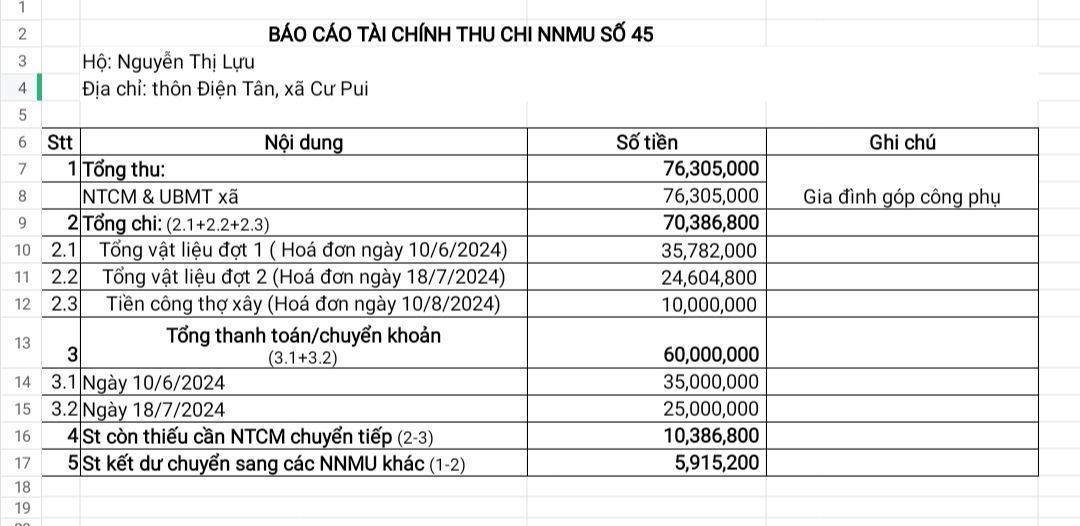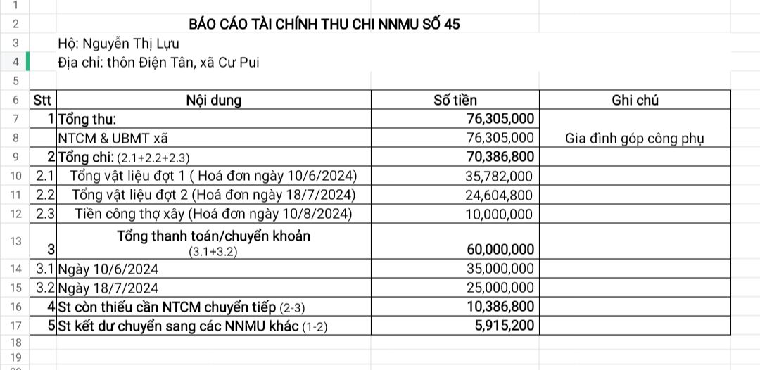 Tôi xin gửi báo cáo tài chính cùng các chứng từ liên quan của NNMU 45 để cả nhà cùng nắm ạ