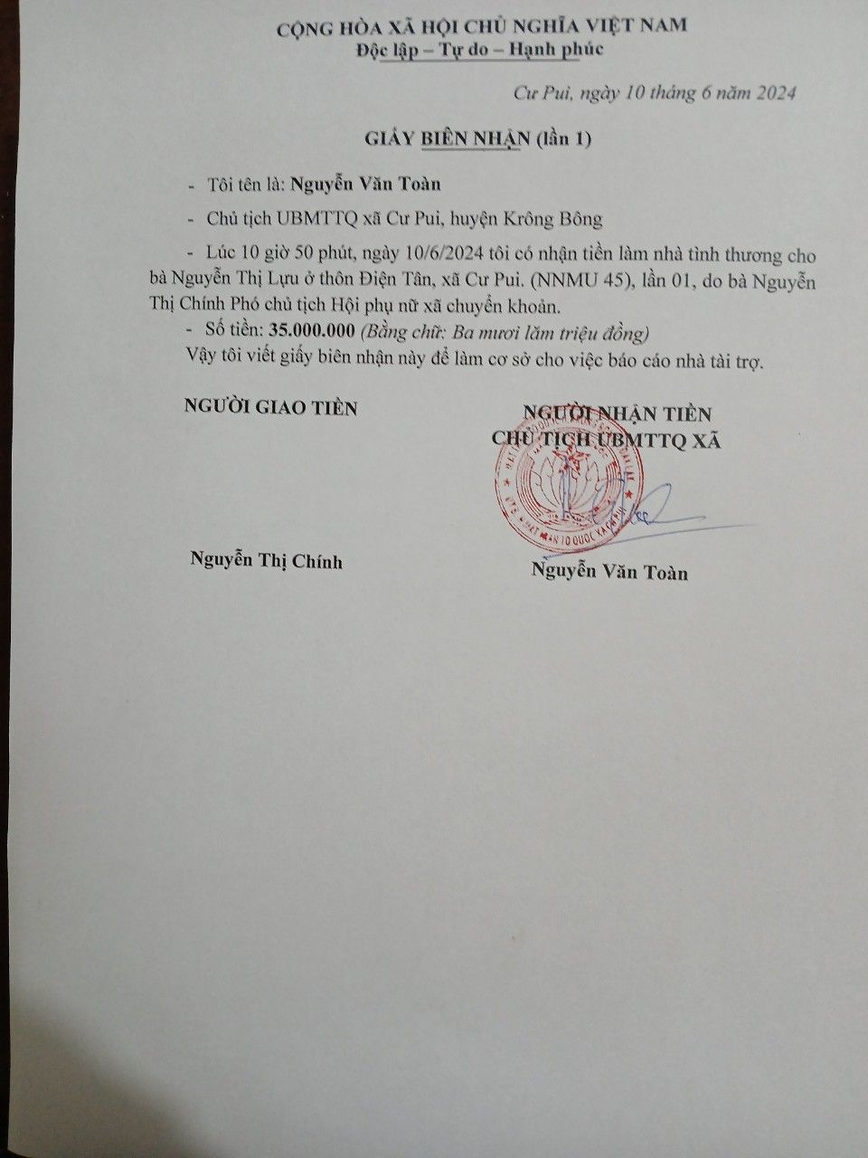 @trangvitgioi : Em chuyển 35,000,000₫ tới chị Chính để anh em khu vực Cư Pui tiến hành xây dựng NNMU số 45 dùm nhé.
