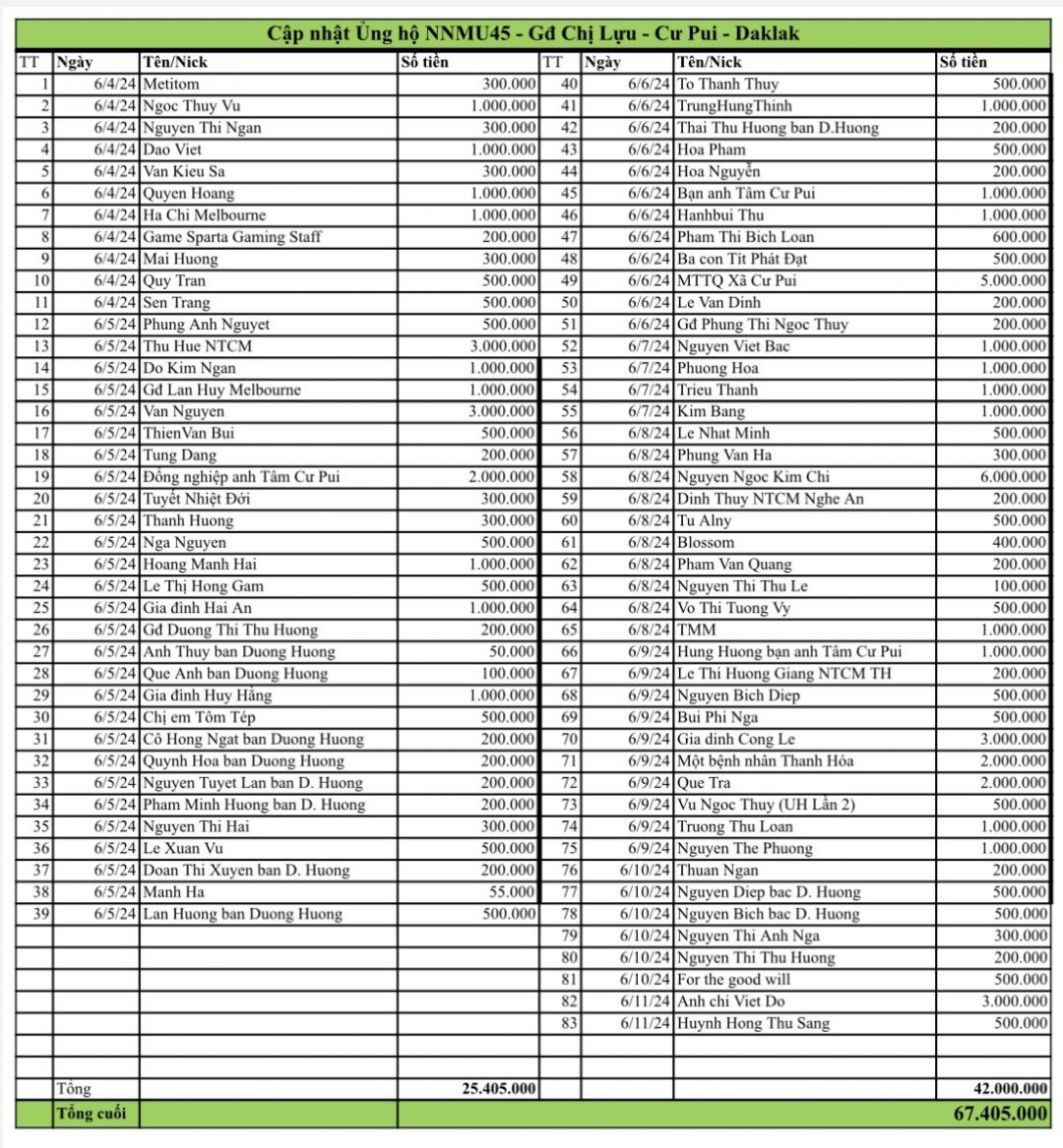 Cập nhật số tiền ủng hộ NNMU số 45 đến thời điểm hiện tại là