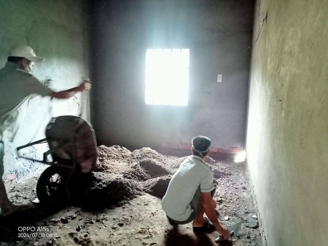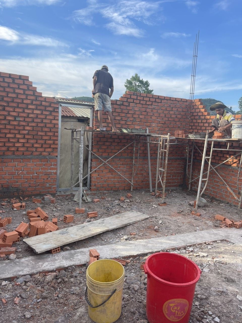 Đã gần xong phần tô tường và đang lát nền.