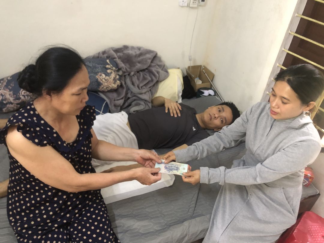 Từ dịp covid cả nhà thất nghiệp, đồng thời Đức bị tai nạn giao thông, mọi hy vọng vụt tắt khi từ thắt lưng trở xuống em bị liệt hoàn toàn.