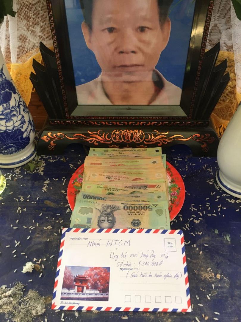 Kêu gọi mọi người đóng góp giúp gia cảnh đưa ông về nơi an nghỉ cuối cùng. Số tiền kêu gọi là 7.500.000đ
