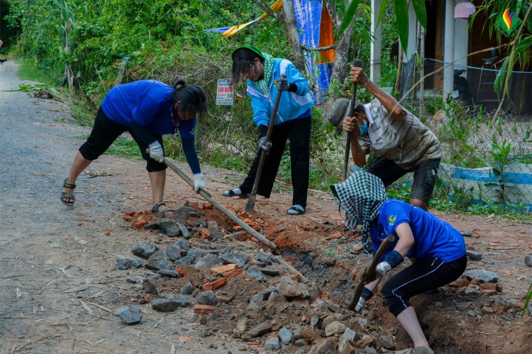 - Hỗ trợ nhân lực thực hiện các công việc ở địa phương như: cưa gỗ sửa chữa cầu đi lại, ban đá cải tạo một số tuyến đường, hỗ trợ dịch vụ công trực tuyến, tuyên truyền về CCCD gắn chip, tuyên truyền giữ gìn vệ sinh và phòng chống sốt xuất huyết...