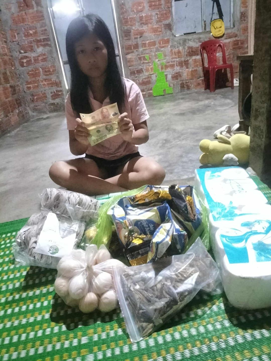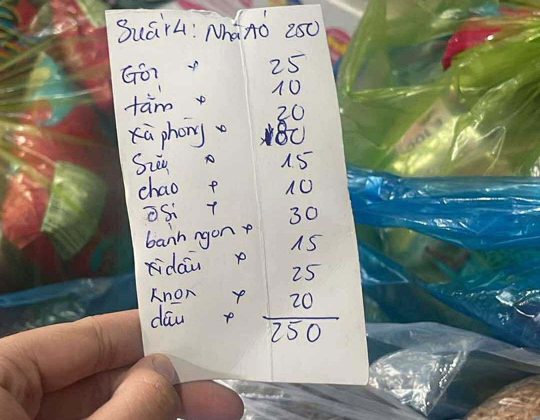 E cũng trao thêm 500.000 đ CMTX t10 nhu yếu phẩm 250.000 đ gia vị, 100.000 đ mì, 50.000 đ trứng, 50.000 đ khuyết  khô, 50.000 đ cá khô