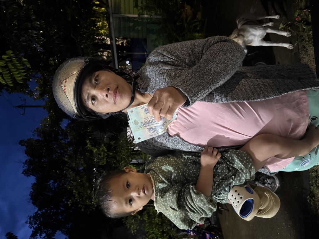 Em đã trao tiền cmtx t12 : 500.000 đ tới gia đình chị Áo