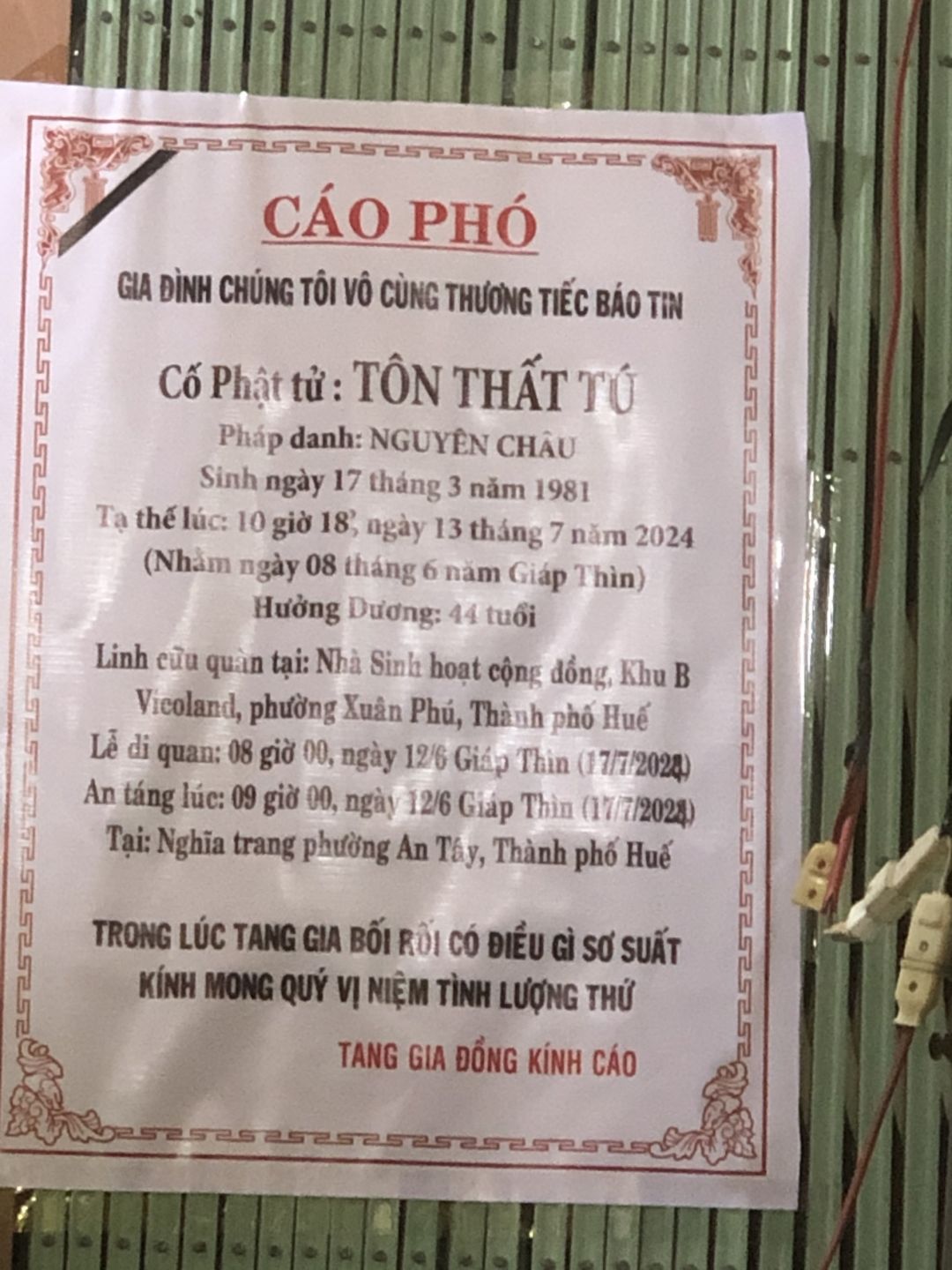 Vợ Anh Tú gởi lời cảm ơn đến quý MTQ đã chung tay giúp đỡ để Anh Tú có đám tang tử tế.