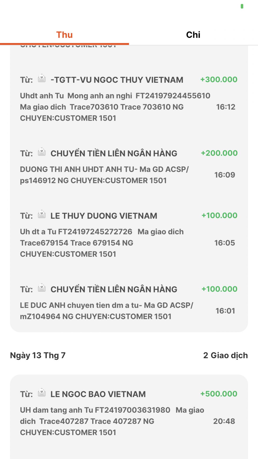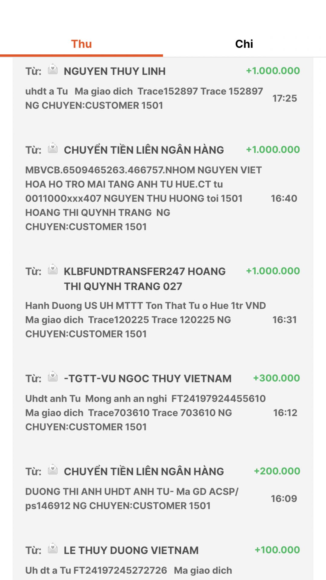 @trangvitgioi : Em chuyển toàn bộ số tiền anh em đã ủng hộ anh Tú về tài khoản của @Khánh Ly dùm nhé.
