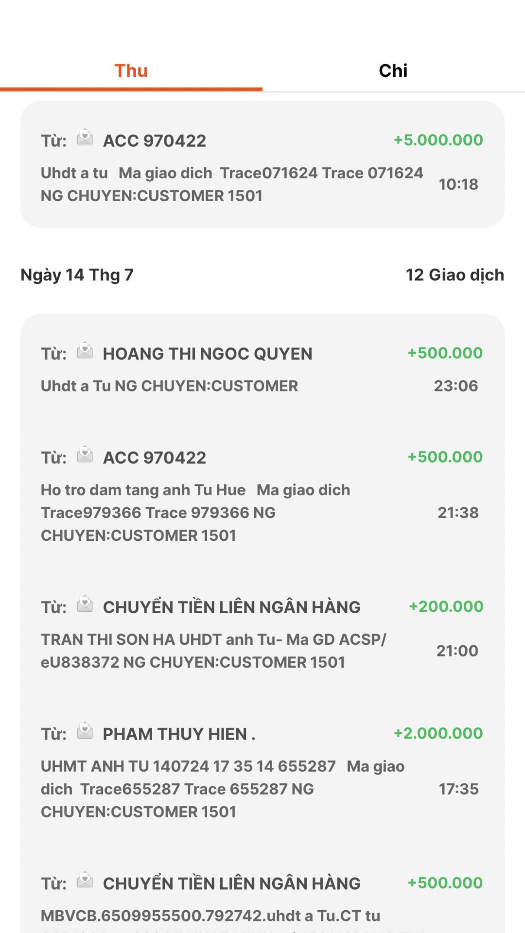 Tổng ủng hộ chuyển khoản vào quỹ là 14.000.000đ, Vịt đã chuyển vào tk chi Khanhly. Chị kiểm tra và xác nhận giúp nhé. Thanks chị