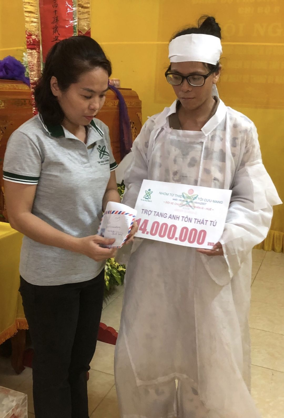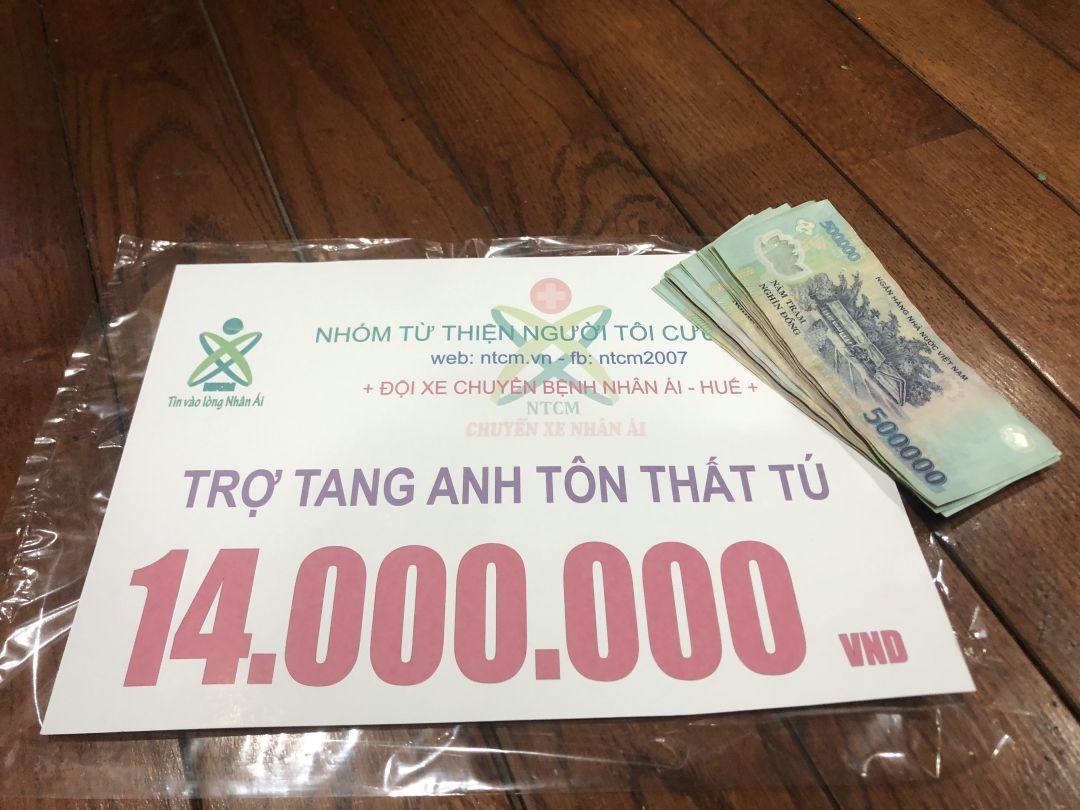 Nhóm Huế đã tiến hành viếng tang và trao cho gia đình anh Tú số tiền hỗ trợ từ mọi người là 14 triệu đồng chẵn.