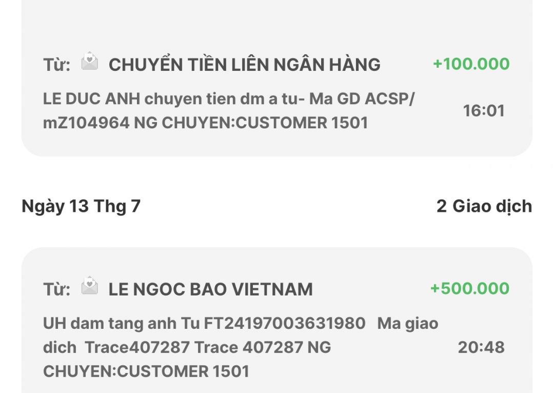@trangvitgioi : Em chuyển toàn bộ số tiền anh em đã ủng hộ anh Tú về tài khoản của @Khánh Ly dùm nhé.