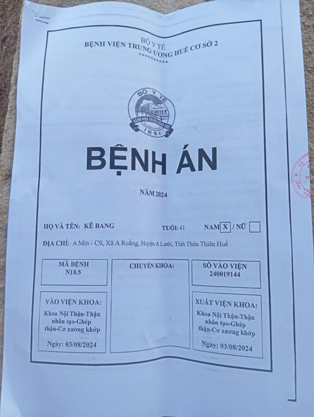 Anh hiện về chạy thận tại bv Tw Huế cơ sở 2 nên em trao người nhà anh