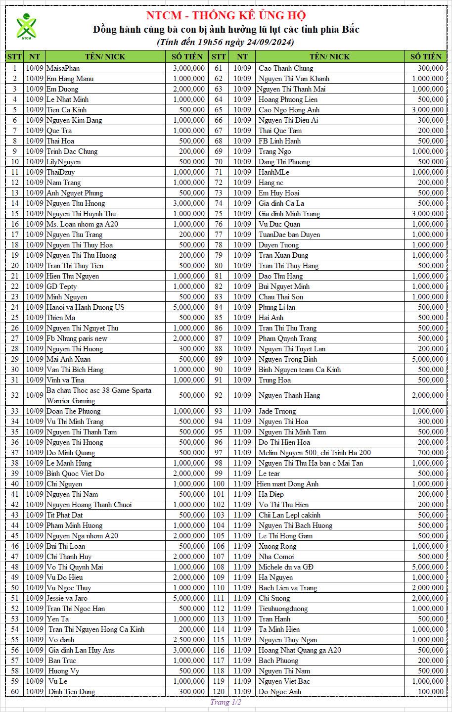 Ngày 20/9, anh Banbe6x có viết bài cập nhật số tiền gia đình 3.610.000đ anh TLC ủng hộ CT Miền Bắc sẽ chuyển sang ủng hộ Lạng Sơn (link bài viết ở dưới), nên sẽ trừ phần này ra, số tồn còn: 123.579.581đ nhé. Chương trình Lạng Sơn thì Loannguyen cũng đã thống kê số tiền ủng hộ này rồi.