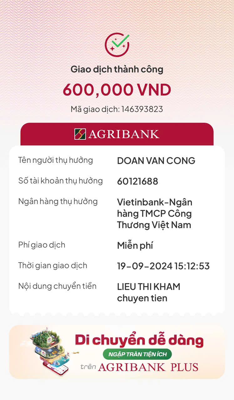 Thủ quỹ chương trình đã chuyển trả cho bạn Giang