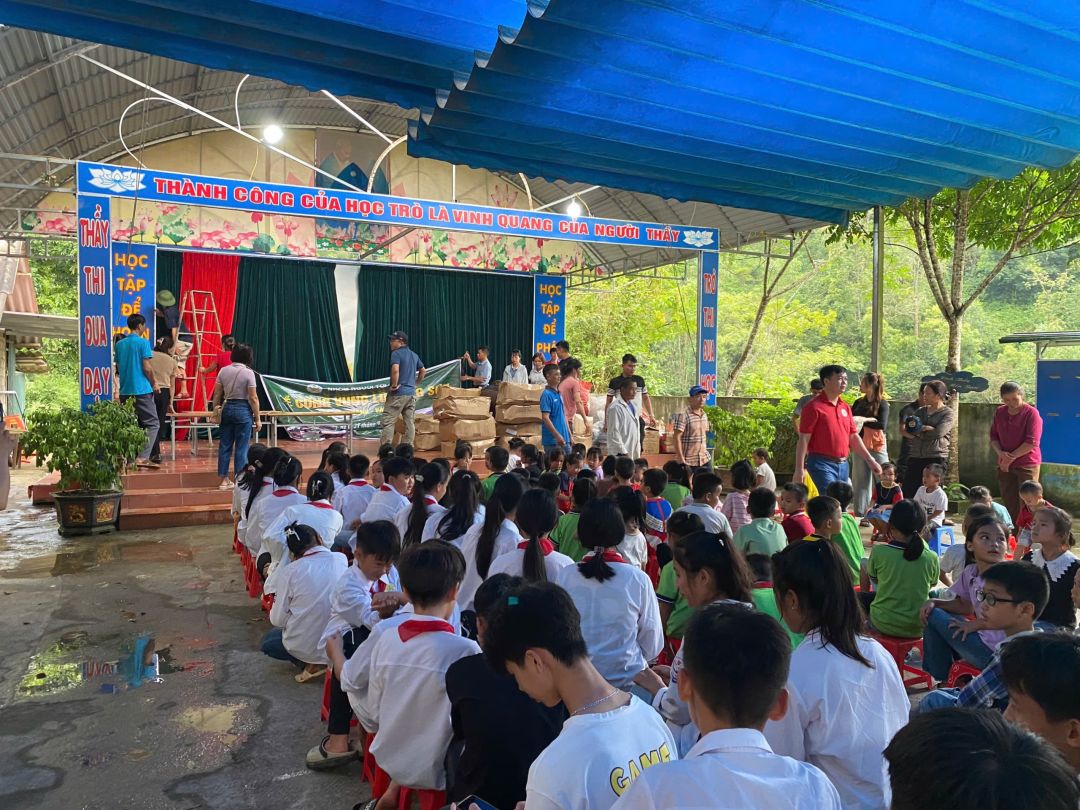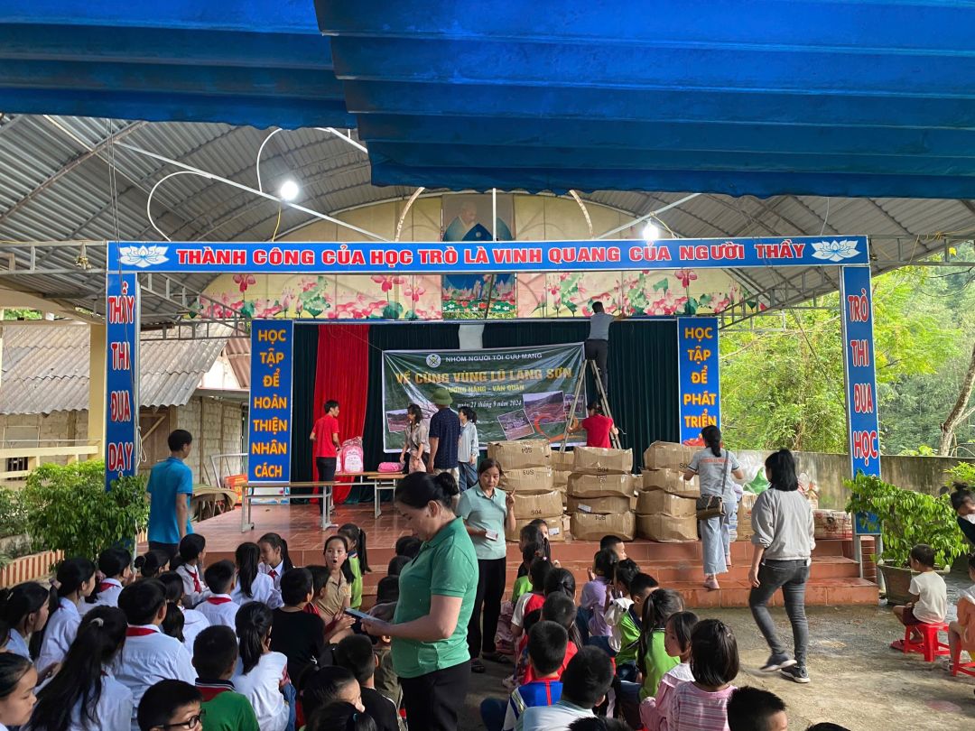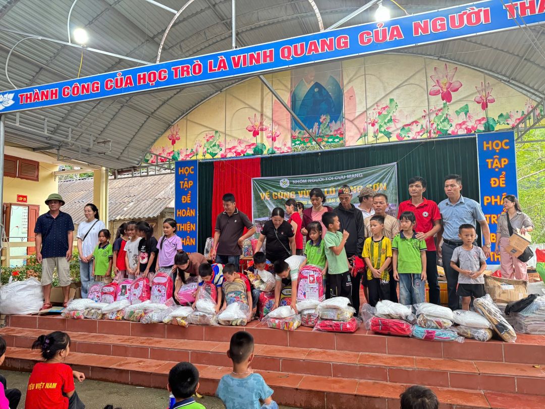 Nhóm đã đi vào bản Lùng Thúm để chuyển tải tình cảm của mọi người tại đây. Nhóm cũng đã ghé trường Mầm Non Tràng Phái để chuyển bánh, gạo, sữa và dụng cụ học tập cho các con và quà cho các giáo viên. Nhóm tiếp tục đi chuyển lên Lương Năng để tặng quà và dụng cụ học tập cho các em ảnh hưởng trực tiếp bão lũ.