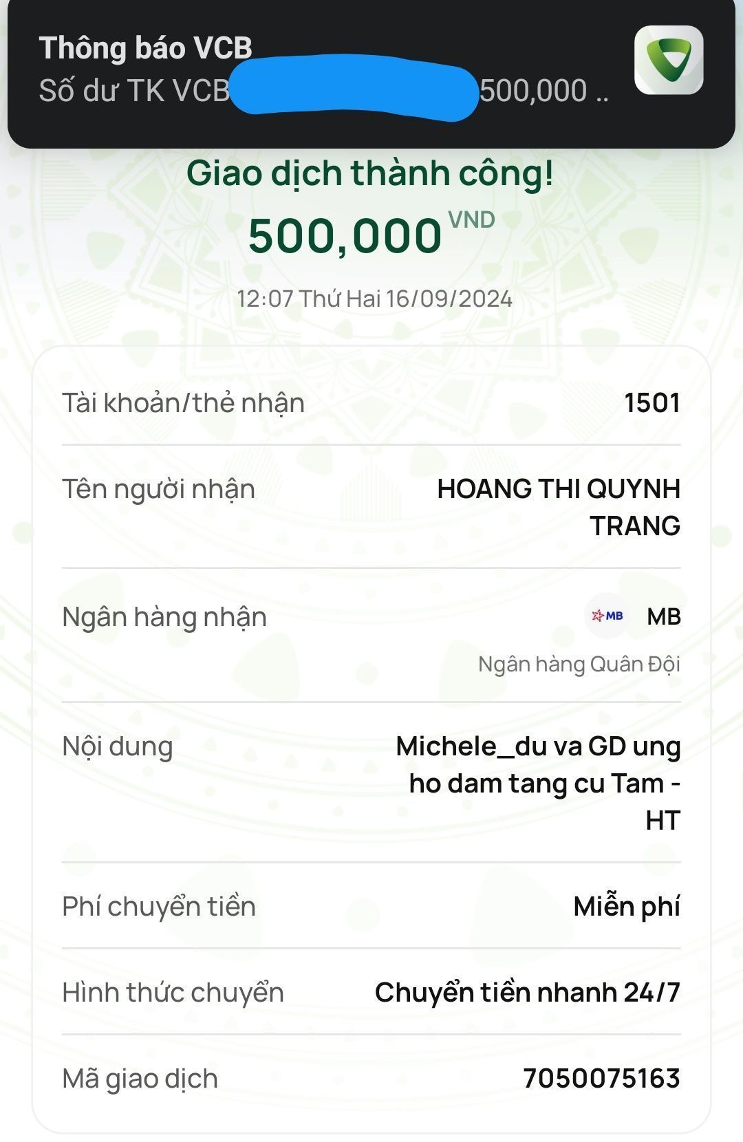 Michele_du và Gia đình xin được ủng hộ đám tang của cụ Tâm 500,000₫.