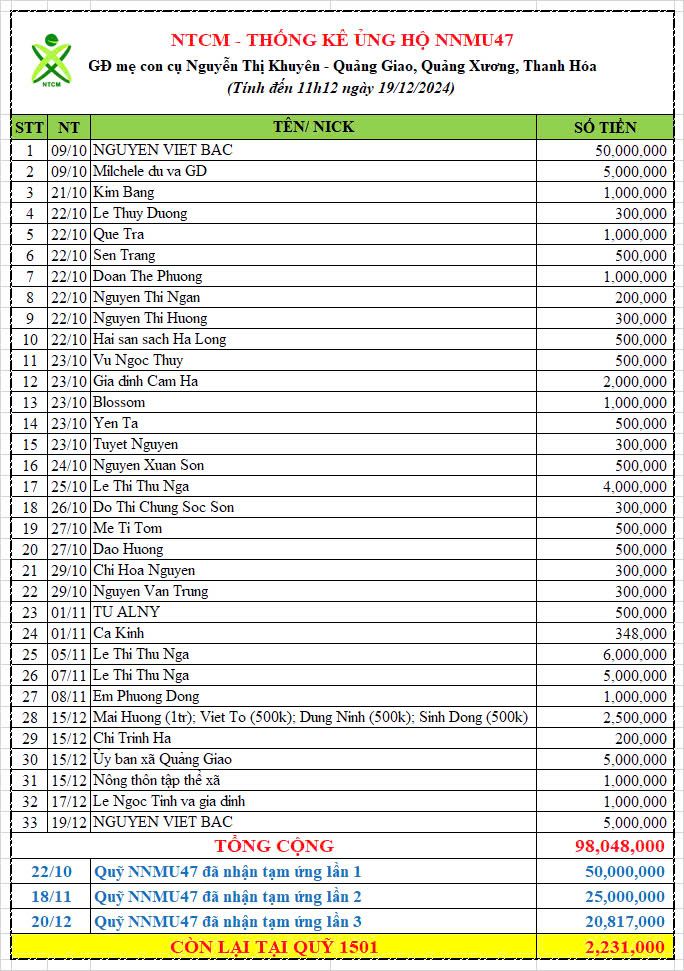 Một lần nữa, NTCM chân thành cảm ơn sự đồng hành của chính quyền địa phương, sự chung sức các MTQ và thành viên NTCM, đặc biệt sự ủng hộ tài chính lớn nhất từ gia đình Nguyen Viet Bac. Bên cạnh đó NNMU47 cũng nhận được bản vẽ thiết kế miễn phí từ đội ngũ HTCons và tài trợ sơn từ Công ty Tân Á Đại Thành.