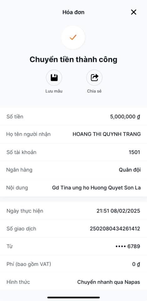 Gia đình bạn Tina ủng hộ 5tr. Cảm ơn gđ bạn nhiều!