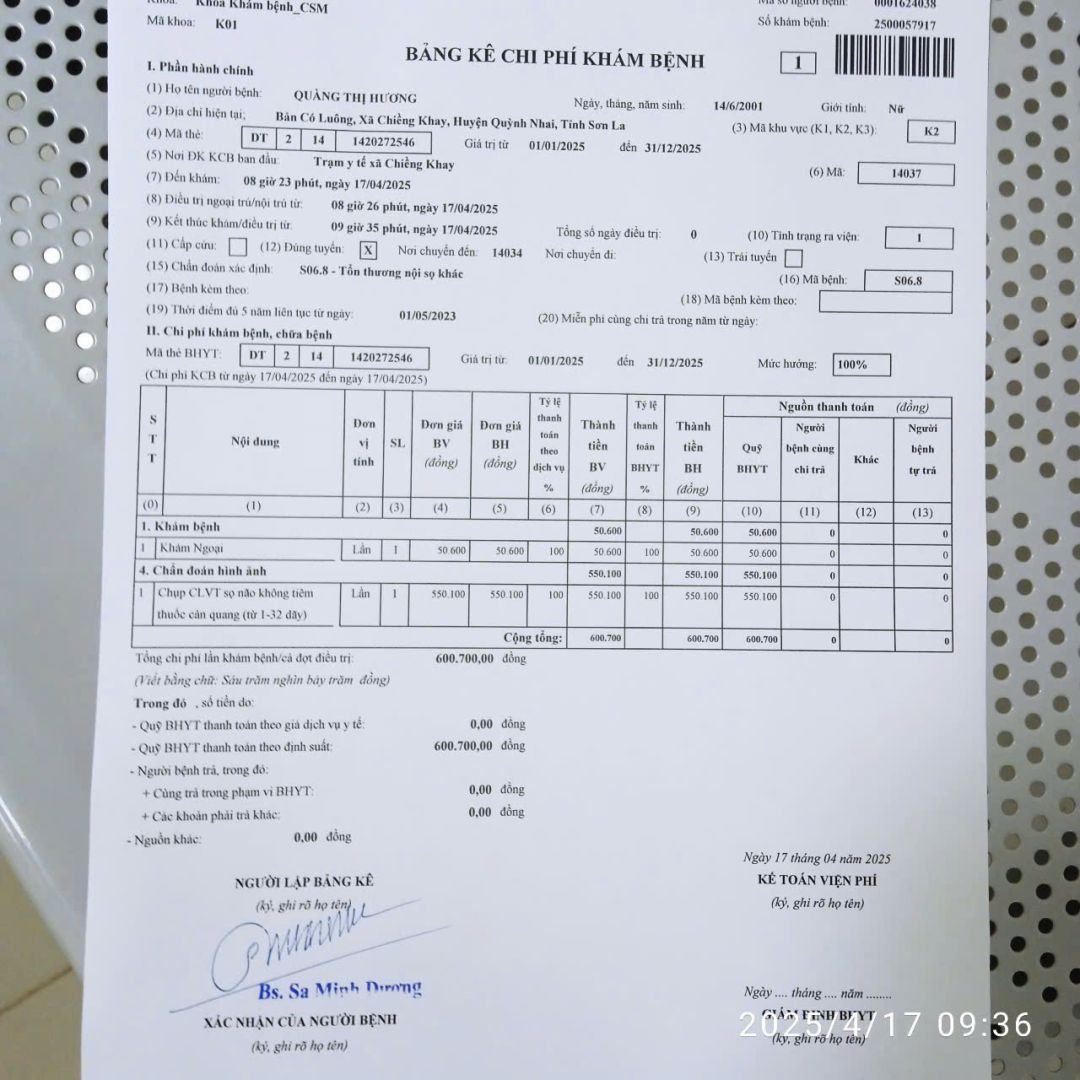 Ngày 13/5/2025, cháu Hương lại nhắn tin xin hỗ trợ CP đi tái khám ( cứ 1 tháng cháu đâu và sốt ruột nên lại tái khám ). Ngày 19/5 HBL đã ck vào TK cháu Hương 1.000k