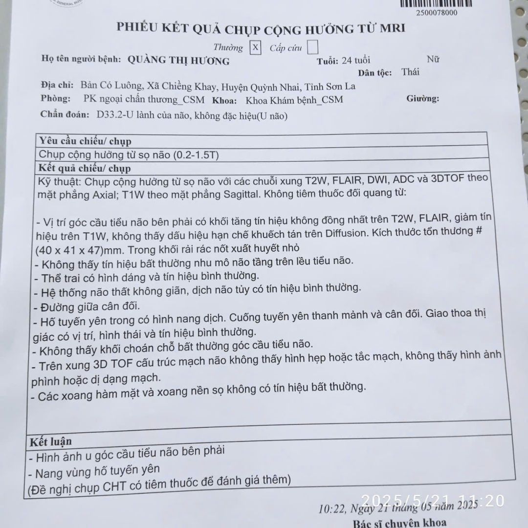 Tuy nhiên cái U đó theo thơi gian cứ to dần lên. Mẹ cháu muốn " có bệnh thì vái tứ phương", mong tìm được chỗ uống thuốc nam hay bắc, biết đâu đấy cháu hợp lại làm khối U không tăng hoặc giảm nhỏ dần đi, giúp cháu bớt các cơn đau đầu; lúc đó có Mổ thì tỷ lệ thành công cao hơn.