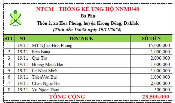 Số tiền ủng hộ tới 16.30 chiều 19/11/2024