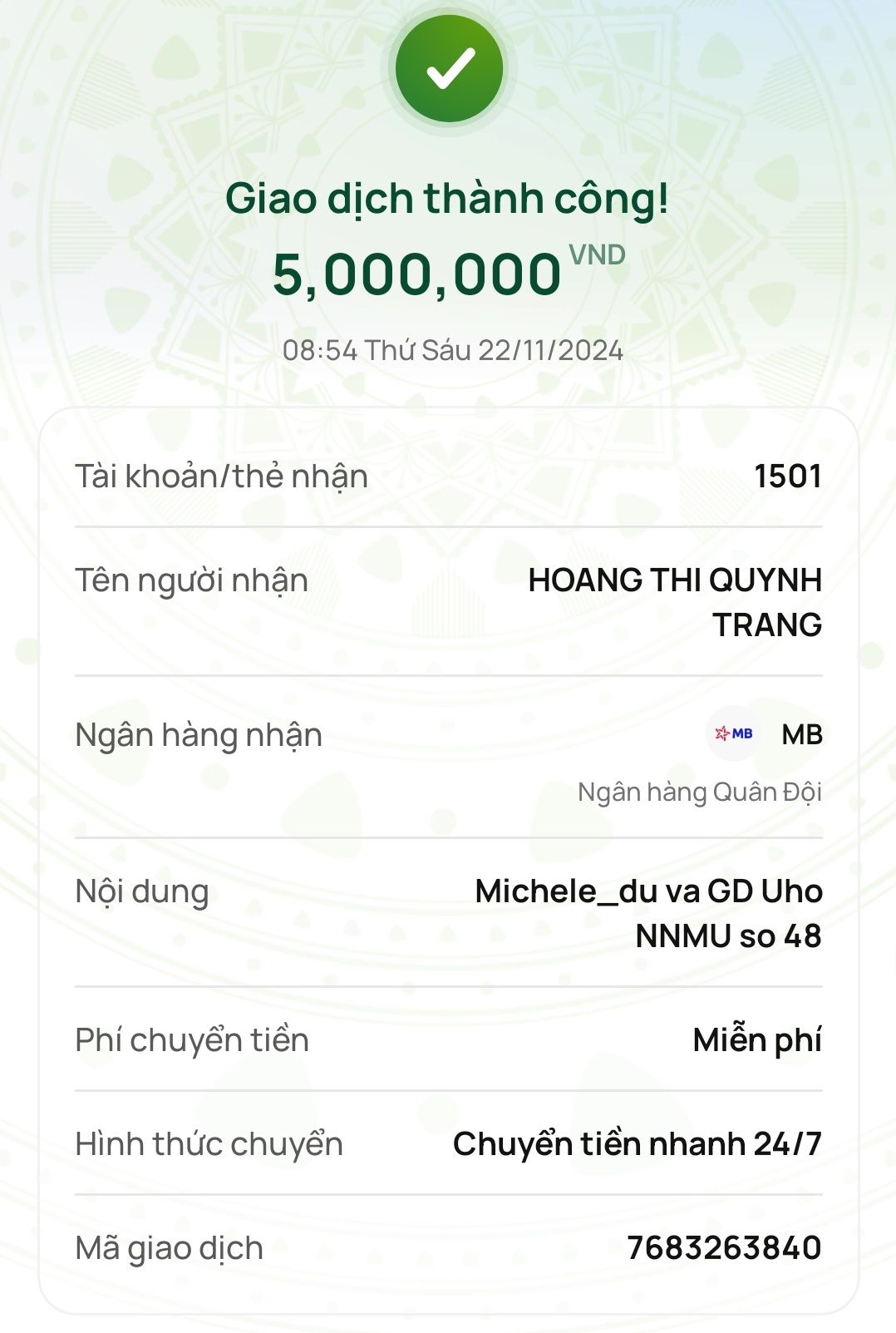 Michele_du và Gia đình ủng hộ NNMU số 48 5,000,000₫.