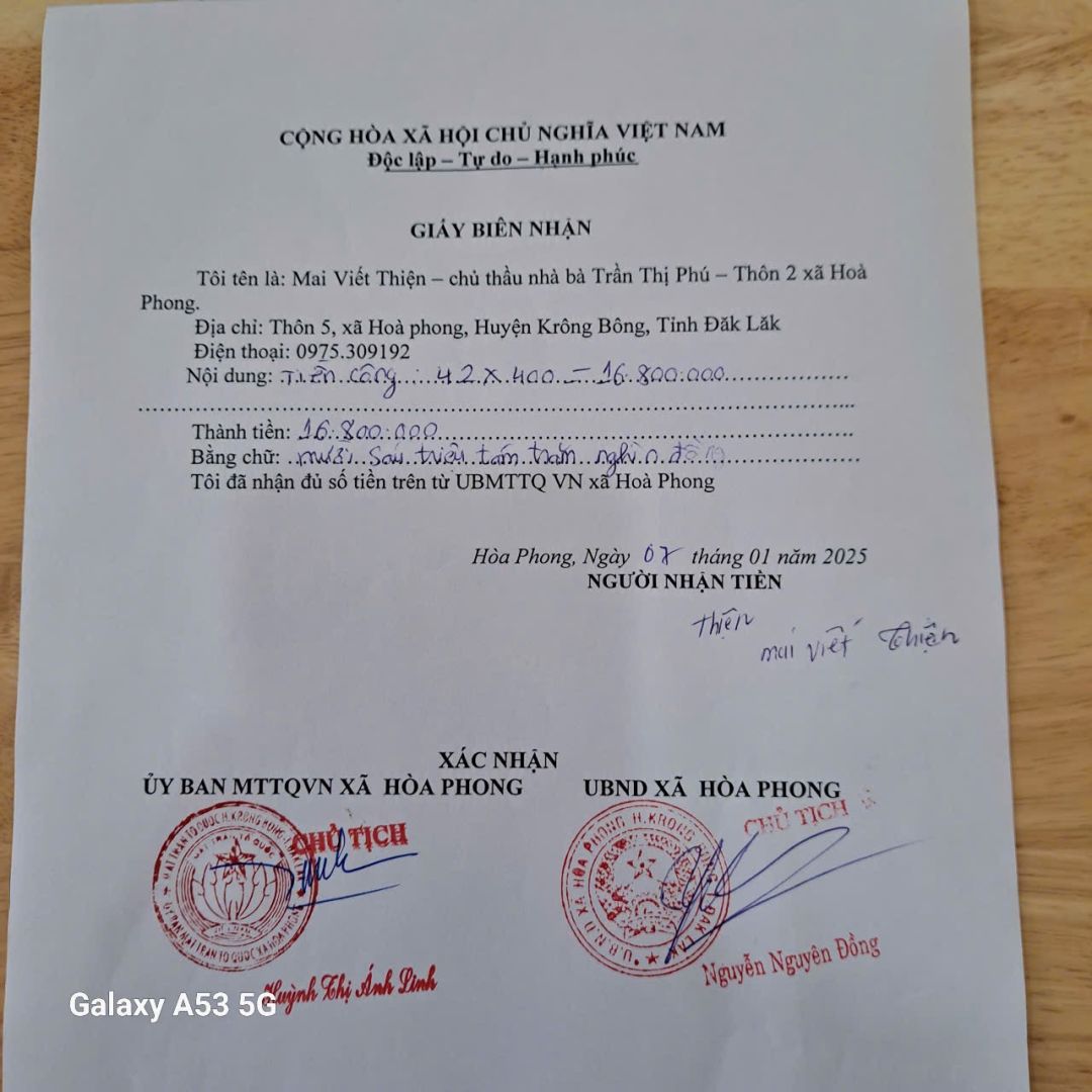Đại diện Nhóm thiện nguyện Người Tôi Cưu Mang là ông Nguyễn Thái Duy cùng các thành viên đã phối hợp với Đảng ủy, UBND, UBMTTQ VN xã Hoà Phong đã bàn giao Ngôi nhà mơ ước số 48 cho chô Phú.