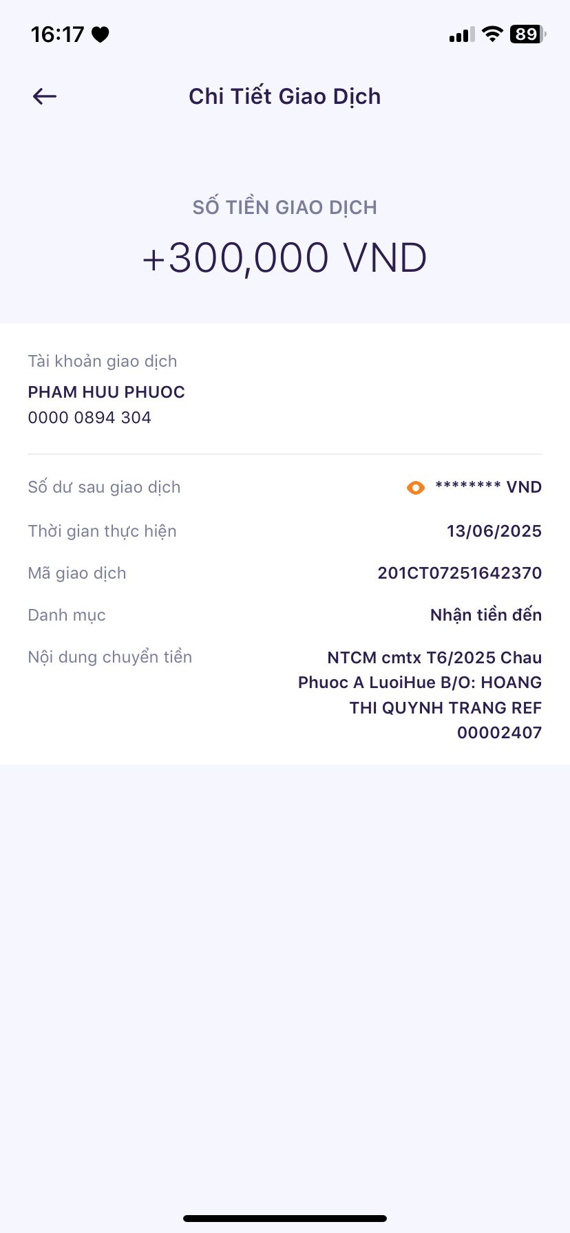 Hôm nay, cháu xin xác nhận đã nhận được 300k của NTCM cmtx t6/2025 rồi ạ!, cháu xin cảm ơn cô dì, chú bác rất nhiều ạ