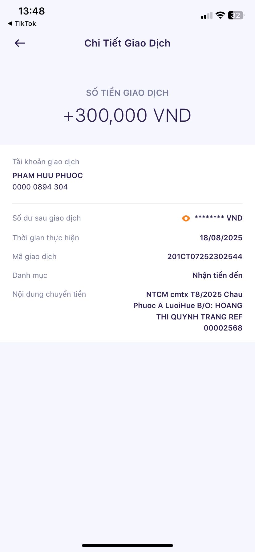 Cô Bạch Liên và Trang đã chuyển tiền CMTX tháng 8/2025 cho cháu @Phuocpham rồi nhé.