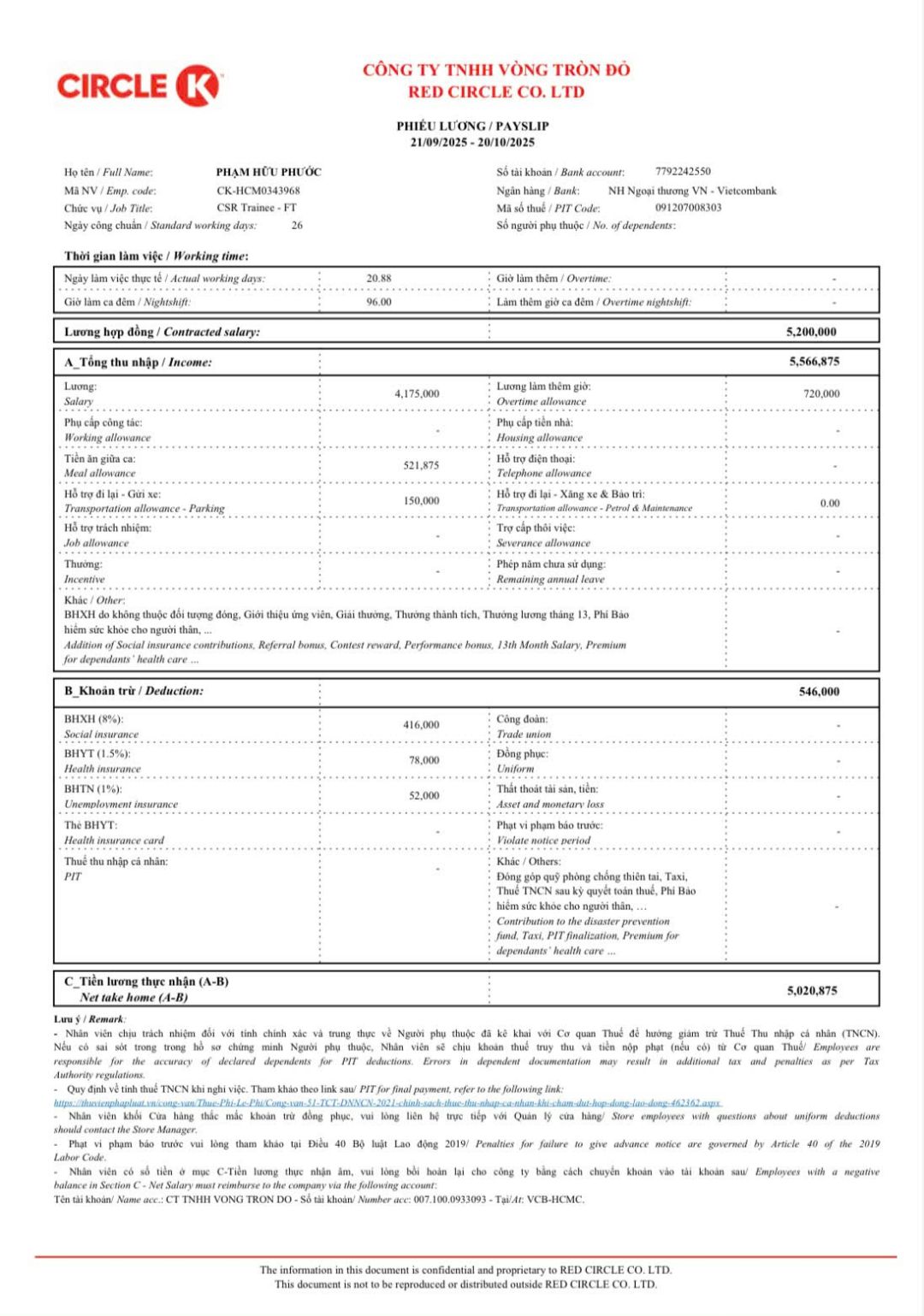 Cháu xin phép cập nhật tình hình hiện tại của cháu, hiện tại thì cháu đã từ Huế chuyển vào Thành Phố Hồ Chí Minh học tập vào 3 tháng trước, cháu hiện tại đang học ở Trường Cao Đẳng Bách Khoa Sài Gòn địa chỉ tại khu công viên phần mềm Quang Trung và học chuyên ngành Ngôn Ngữ Trung. Cháu hiện tại và đang làm việc tại Circle K, cố gắng làm ca đêm (22h-6h) để trang trải, tháng lương gần nhất của cháu là 5 triệu con có gửi bảng lương kèm theo.