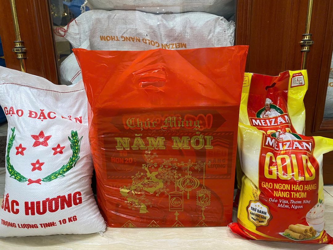 Em đã tiến hành mua 710kg gạo (chia 71 túi 10kg) và đã nhận đủ hàng.