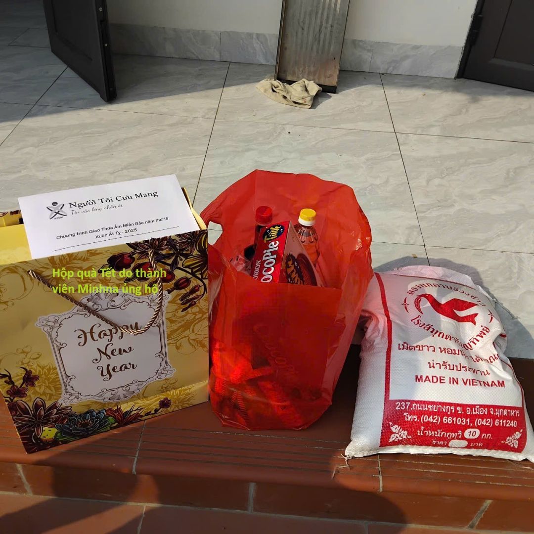 Em xin gửi kèm hình ảnh phần quà theo chương trình được chuẩn bị đầy đủ theo danh mục dự kiến. Ngoài ra chương trình còn nhận được hộp quà Tết rất chất lượng từ Thành viên Minhna cho đủ cả 9 trường hợp. Vô cùng cảm ơn Minhna và gia đình