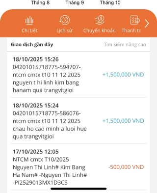 Quỹ đã chuyển 1.500.000đ cmtx 3 tháng vào tk Vịt, đồng thời Vịt đã chuyển cmtx tháng 10 vào tk em Linh, kiểm tra giùm chị nha. Thanks.