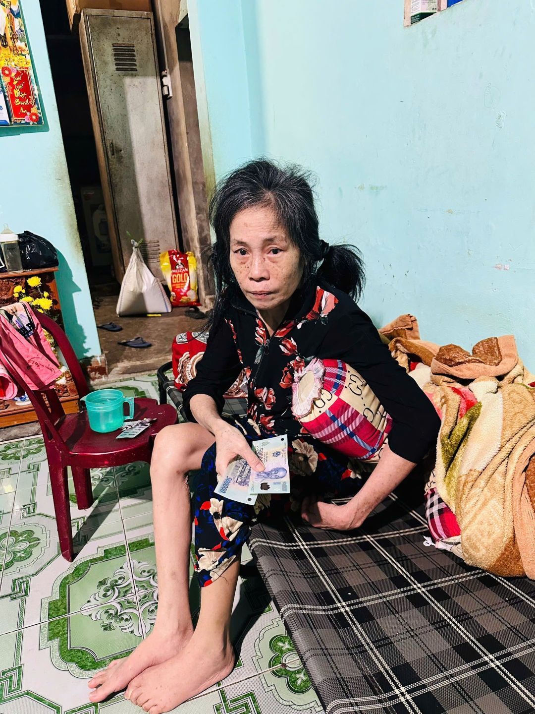 Sau gần 10 năm tai biến thì chồng chị ra đi và chưa đầy năm sau ngày anh mất thì chị cũng bị tai biến liệt nửa người cho tới bây giờ.