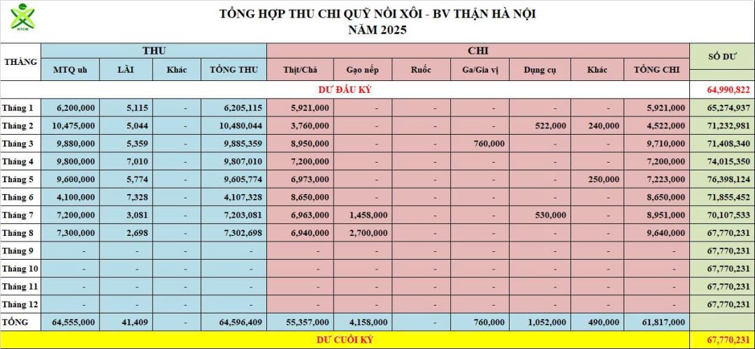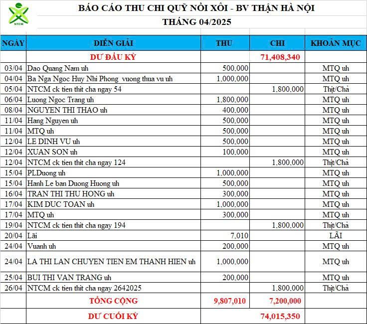 Re: Nồi Xôi - Bệnh viện Thận Hà Nội - Thống kê cưu mang, Báo cáo thu chi năm 2025