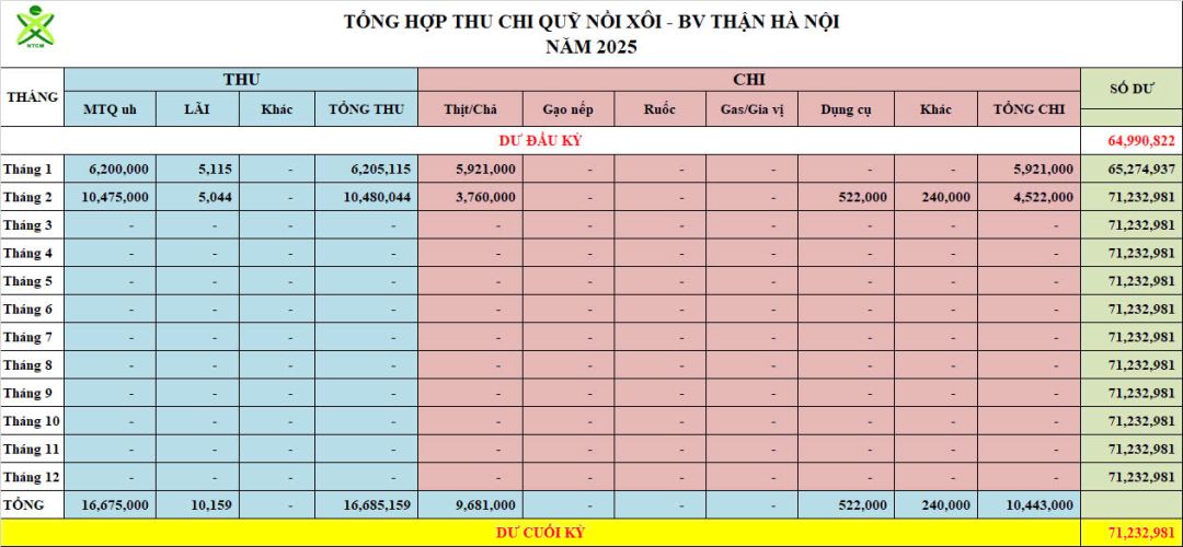 Re: Nồi Xôi - Bệnh viện Thận Hà Nội - Thống kê cưu mang, Báo cáo thu chi năm 2025