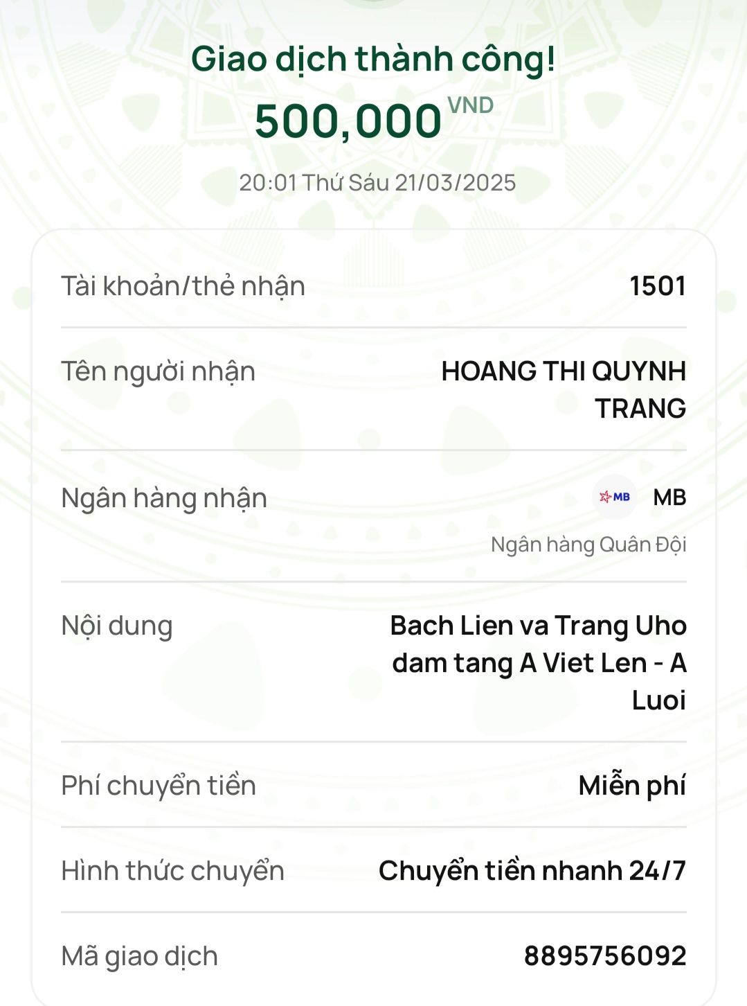 21❤️.Nguyen Duc Thang 100 (chuyển vào tài khoản em Pi Riu Thế)