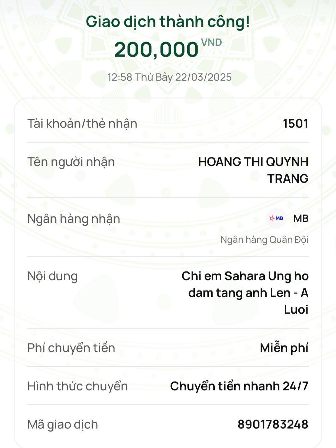 Đến chia buồn với gia đình, Em xin trao tổng số tiền 5.700.000 VNĐ để phần nào đó gia đình lo hậu sự cho anh A Viết Lên