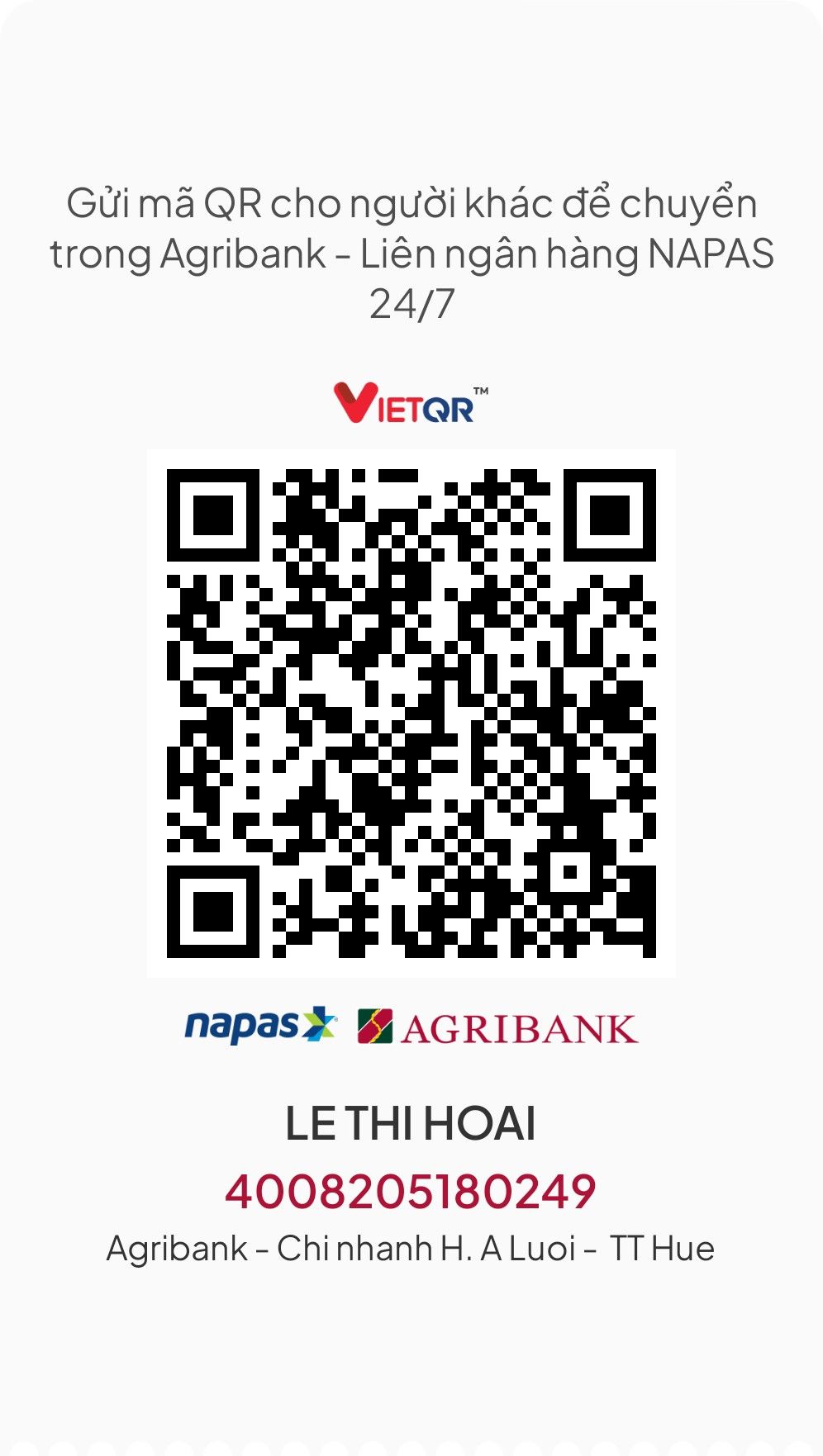 Nhờ @trangvitgioi trung chuyển tiền hàng tháng qua tài khoản của mẹ Cao Minh dùm nhé.